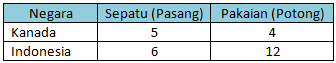 - Di Kanada 1 pasang sepatu = 0,8 potong pakaian.