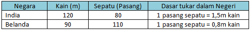 - Di Indonesia 1 potong pakaian = 0,5 pasang sepatu