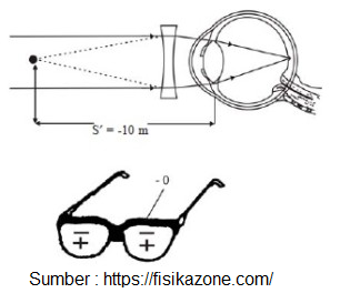 sehingga, kekuatan lensa kacamatanya adalah :
