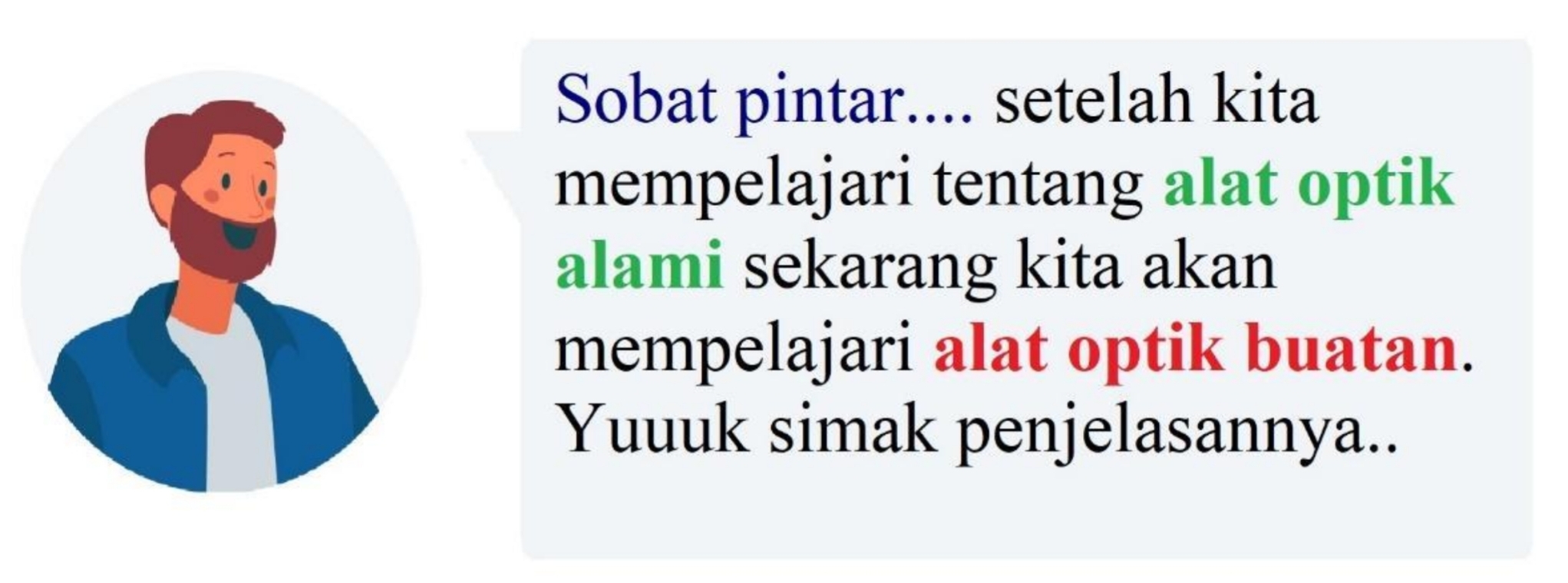 Sekarang kita lanjut kuy belajar alat optik buatan. Diantaranya :
