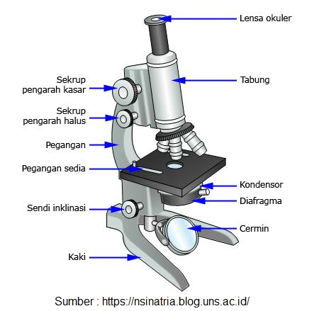Mikroskop adalah alat optik yang terdiri atas susunan beberapa lensa pembesar yang digunakan untuk melihat benda, jasad renik, mikroorganisme, atau bagian tubuh makhluk hidup yang berukuran sangat kecil yang tidak dapat dilihat menggunakan mata telanjang. Bagian-bagian mikroskop diperlihatkan seperti pada gambar berikut ini.