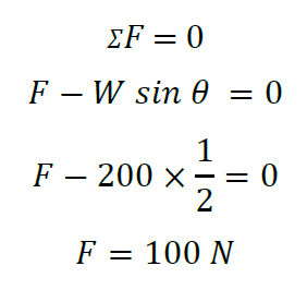 Balok bermassa 20 kg berada di atas bidang miring licin dengan sudut kemiringan 30. Jika Ucok ingin mendorong ke atas sehingga kecepatannya tetap maka berapakah gaya yang harus diberikan oleh Ucok?