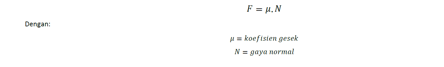Gaya gesek adalah gaya yang berarah melawan gerak benda atau arah kecenderungan benda bergerak. Gaya gesek muncul apabila dua buah benda bersentuhan. Gaya gesek merupakan gaya yang timbul akibat kekasaran dua permukaan benda yang saling bersentuhan. Komponen gaya gesek selalu sejajar dengan bidang sentuh dan arahnya selalu berlawanan dengan arah gerak benda. Oleh karena itu, gaya gesek bersifat menghambat gerak benda. Gaya gesek dibedakan menjadi 2, yaitu gaya gesekan statis dan gaya gesekan kinetis.