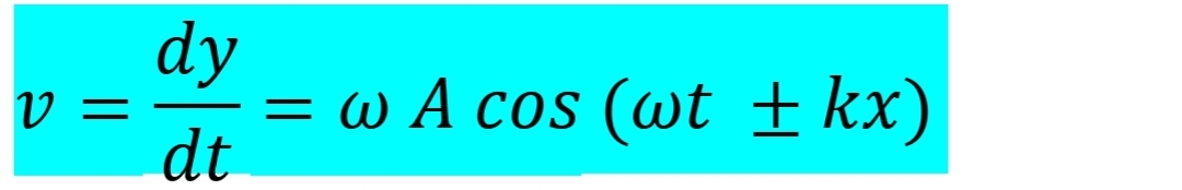 Kecepatan gelombang merupakan turunan pertama dari fungsi simpangan (y) terhadap waktu.