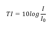 Di mana TI adalah taraf intensitas bunyi dalam satuan desibel (dB), I adalah intensitas bunyi yang diukur, dan I0 adalah intensitas ambang pendengaran.