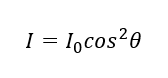 Intensitas cahaya yang diamati oleh pengamat akan berkurang setelah melewati polarisator, dan besarnya dapat dihitung menggunakan persamaan berikut: