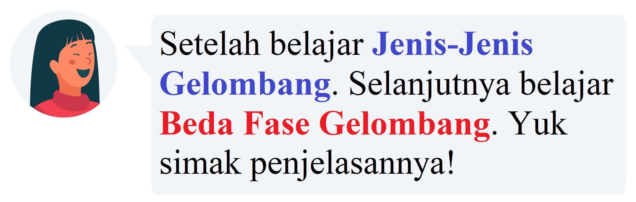Sobat Pintar! Gelombang adalah getaran yang merambat, dan simpangan gelombang dapat dinyatakan dengan fase. Fase gelombang tidak memiliki kuantitas pasti karena tergantung pada posisi dan waktu dari titik yang diamati.