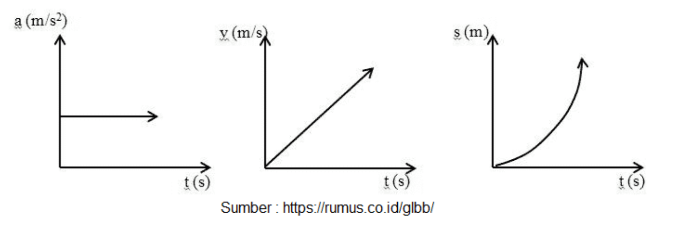 Berikut ini merupakan tiga macam grafik pada GLBB