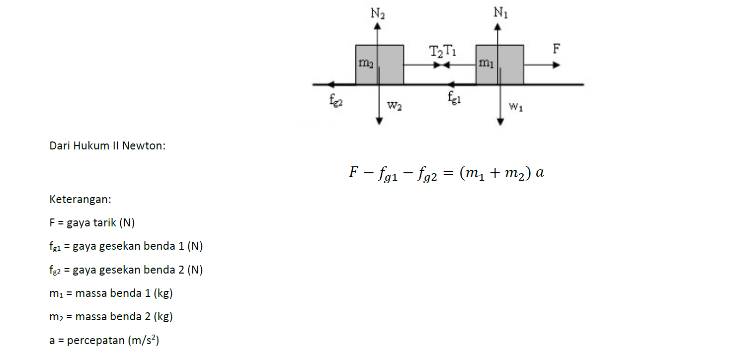Dua Benda yang diletakkan pada bidang datar yang ditarik dengan sebuah gaya