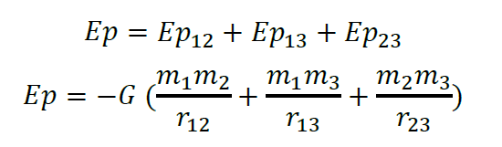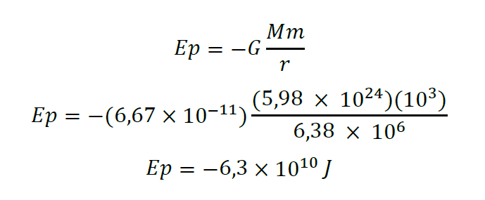 Besarnya energi potensial dari sebuah benda bermassa m yang berjarak r dari bumi yang massanya M adalah: