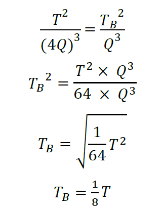 Planet A dan B masing-masing berjarak rata-rata sebesar P dan Q terhadap matahari. Planet A mengitari matahari dengan periode T. Jika P = 4Q, maka planet B mengitari matahari dengan periode…
