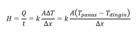 Persamaan yang menghubungkan beberapa besaran yang mempengaruhi laju kalor konduksi ditunjukkan dengan persamaan berikut: