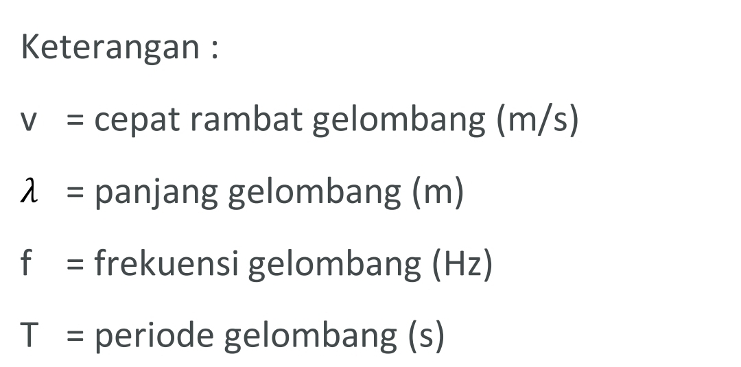 Rumus cepat rambat gelombang dapat dituliskan sebagai berikut :