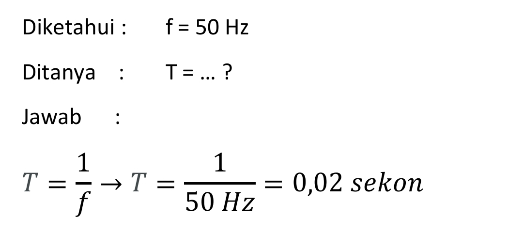 Sebuah getaran menghasilkan frekuensi 50 Hz. Periode getarannya adalah …