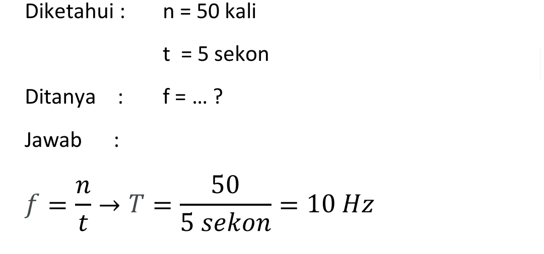 Frekuensi gelombang (f) adalah jumlah gelombang yang merambat dalam 1 detik (satu detik ada berapa gelombang).