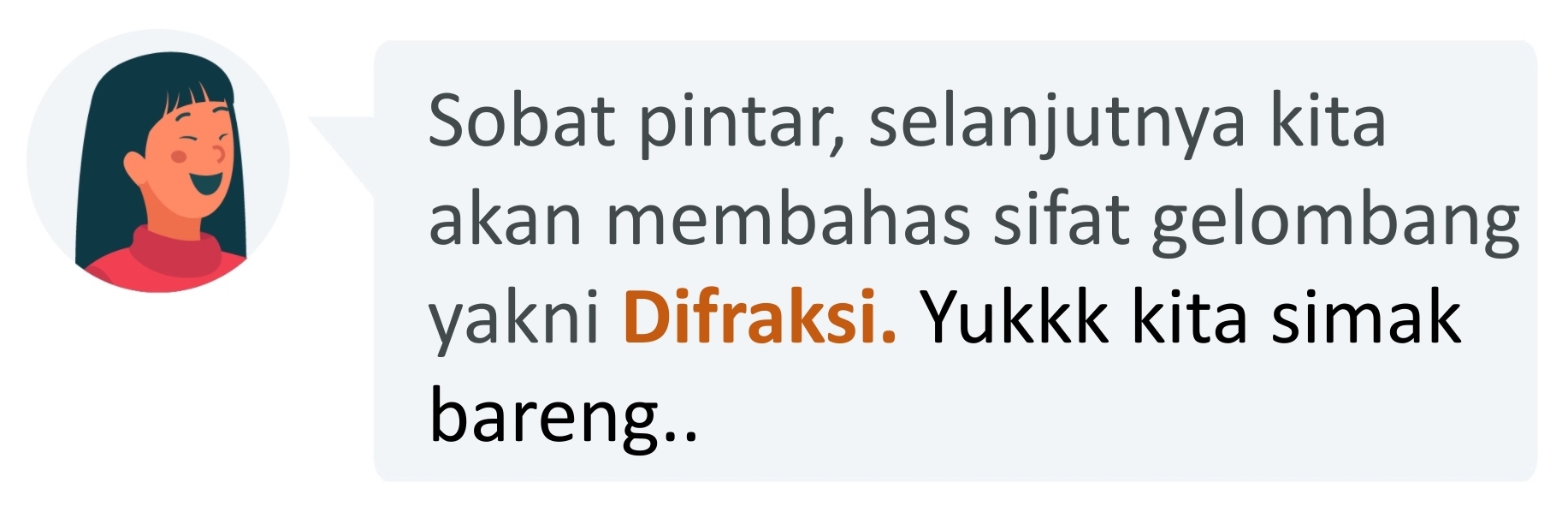 - Difraksi tidak hanya dialami oleh gelombang elektromagnetik seperti gelombang cahaya, tetapi dialami juga oleh gelombang mekanik seperti gelombang bunyi.