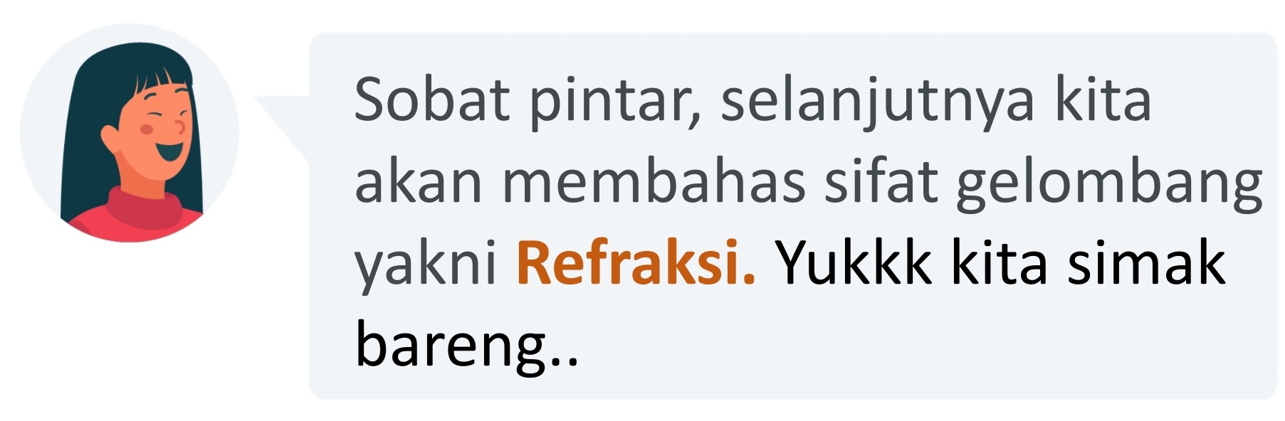 - Apabila gelombang cahaya yang sedang merambat dalam suatu medium memasuki medium yang baru, gelombang cahaya juga mengalami pembiasan. Pembiasan cahaya adalah pembelokan arah rambatan gelombang cahaya. Pembiasan terjadi karena adanya perbedaan kecepatan gelombang cahaya dalam setiap medium yang berbeda.