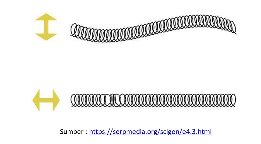 Dari sifat gelombang di atas yang sesuai dengan ciri-ciri gelombang bunyi adalah….