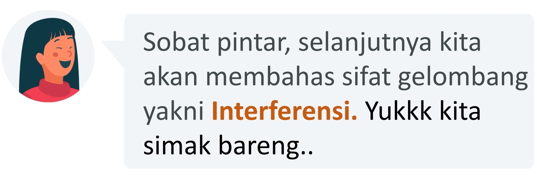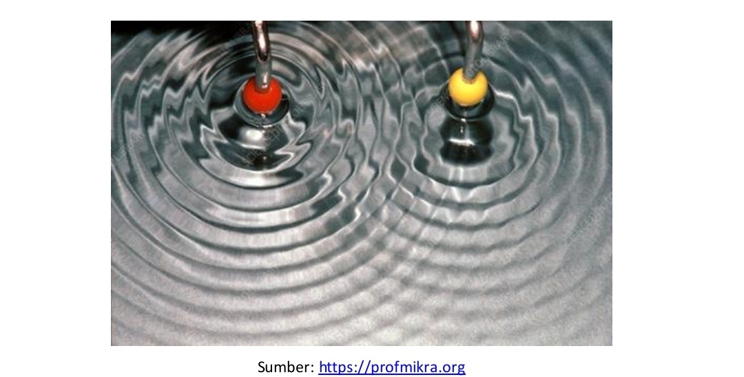 - Selain dialami oleh gelombang elektromagnetik seperti gelombang cahaya, interferensi dialami juga oleh gelombang mekanik seperti gelombang air, gelombang tali atau gelombang bunyi.