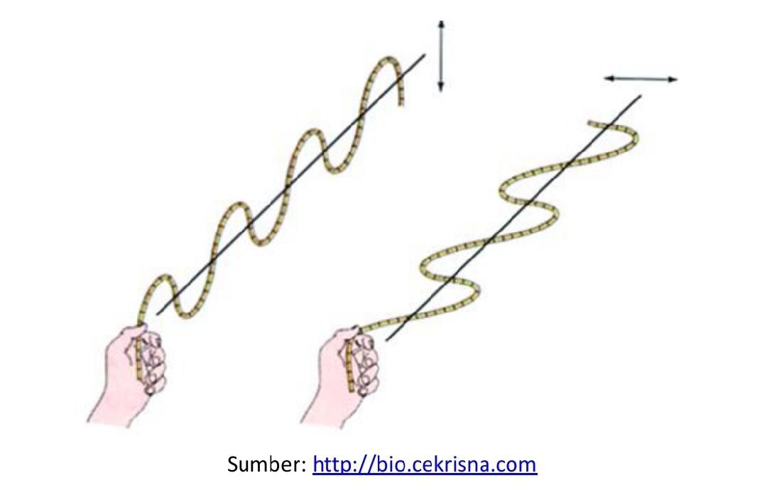 Dari sifat gelombang di atas, yang sesuai dengan ciri-ciri gelombang cahaya adalah…