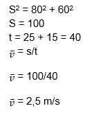 Aura diminta berlari di lapangan sepak bola. Dari titik pojok lapangan sekolah dia berlari ke Timur hingga sejauh 80 m dalam waktu 25 sekon. Kemudian melanjutkan ke arah utara hingga sejauh 60 m dalam waktu 15 sekon. Berapakah kecepatan rata-rata Aura ?