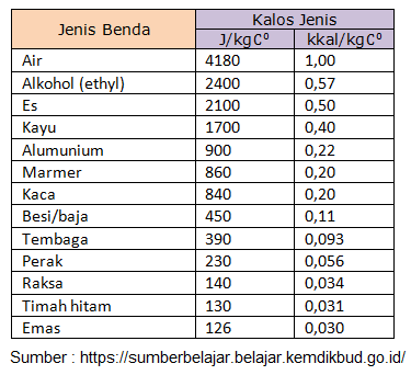 1 kal = 4,2 J atau 1 J = 0,24 kal