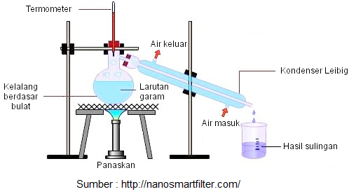 Cara kerja alat penyulingan air dapat digambarkan sebagai berikut: