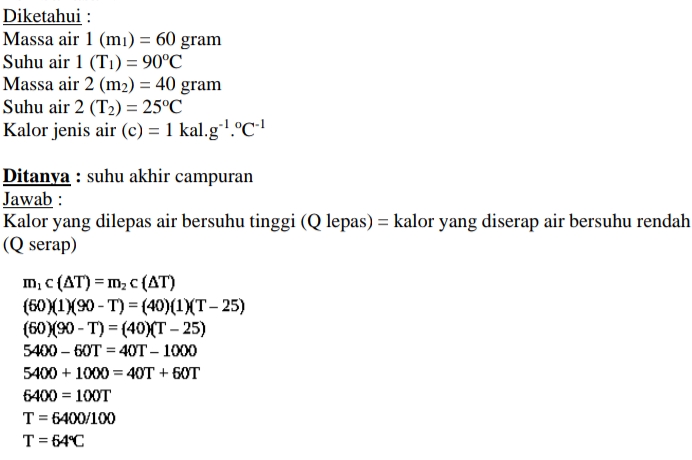 Jika kalor jenis suatu zat diketahui, maka kalor jenis zat lain yang dicampur zat tersebut dapat dihitung.