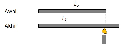 Koefisien muai panjang suatu bahan adalah perbandingan antara pertambahan panjang terhadap panjang awal benda persatuan kenaikan suhu :