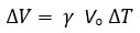 Koefisien muai volume suatu bahan adalah perbandingan pertambahan volume awal benda persatuan kenaikan suhu: