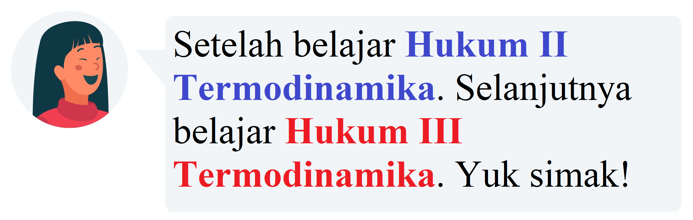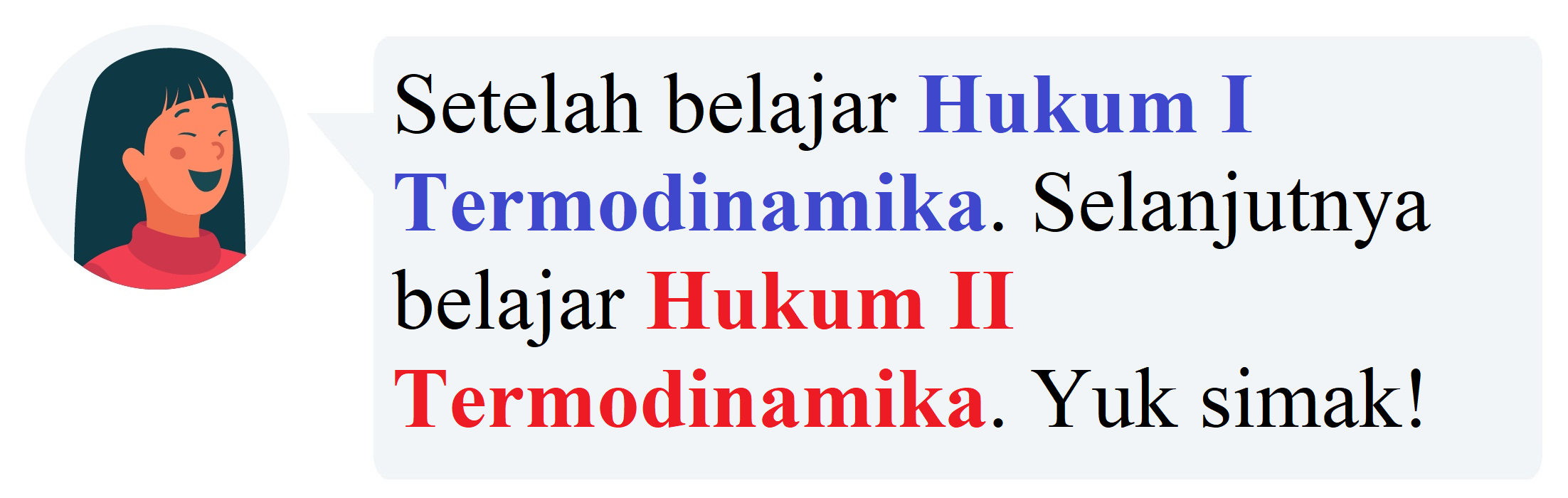 “Hukum II termodinamika dalam menyatakan aliran kalor mengalir secara spontan dari benda bersuhu tinggi ke benda bersuhu rendah dan tidak mengalir secara spontan dalam arah kebalikannya”