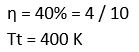 Suatu mesin Carnot, jika reservoir panasnya bersuhu 400 K akan mempunyai efisiensi 40%. Jika reservoir panasnya bersuhu 640 K, efisiensinya.....%