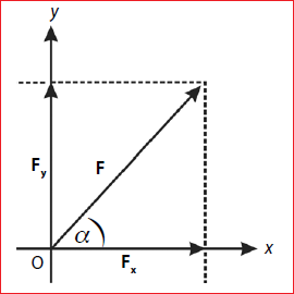 Komponen vektor F dalam arah sumbu y adalah Fy, yang besarnya Fy = F sin alpha.