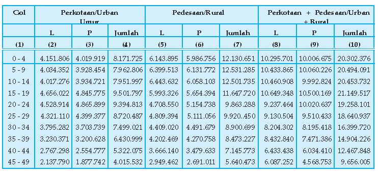 E. keadaan penduduk dilihat dari segi komposisi usia