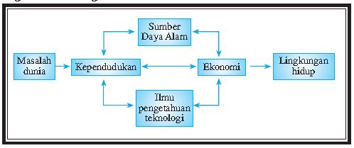 Berbagai permasalahan di dunia dalam hubungan penduduk, ekonomi, sumber daya alam, iptek, dan lingkungan hidup membentuk suatu hubungan yang mempengaruhi sebagai berikut.