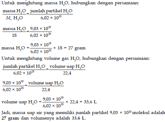 1. Hitunglah volume 9,03 x 1023 molekul uap air (Mr = 18) pada keadaan standar.