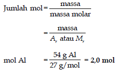 2. Hitunglah jumlah mol dari 54 g Al dalam sebuah perabotan rumah tangga (Ar Al = 27).