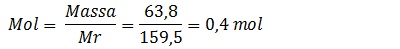 Berapa mol dari 63,8 gram tembaga (II) sulfat ? (Ar Cu = 63,5; S = 32; O = 16)