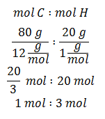 Suatu senyawa hidrokarbon memiliki komposisi zat 80% unsur karbon dan 20% unsur hidrogen. Tentukan rumus empirisnya jika Ar C = 12 dan Ar H = 1.