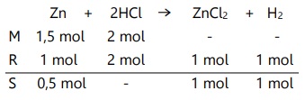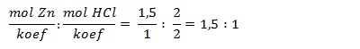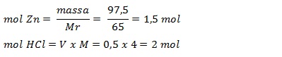 Pada reaksi berikut, 97,5 gr zink direaksikan dengan 500 mL HCl 4 M.