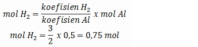 Berapa mol gas hidrogen dapat dihasilkan jika digunakan 0,5 mol aluminium....