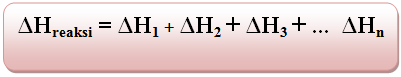 Untuk menentukan besarnya perubahan entalpi reaksi harus menjumlahkan persamaan dari perubahan entalpi masing-masing reaksi.