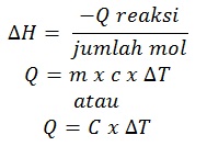 - Penentuan perubahan entalpi reaksi menggunakan cara Kalorimetri