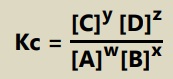 Konstanta konsentrasi (Kc) dipengaruhi oleh konsentrasi zat yang berwujud larutan dan gas. Jika reaksi mengandung zat berwujud padat dan cair, maka pangkat konsentrasi zatnya nol, karena zat padat dan cair tidak memiliki konsentrasi.