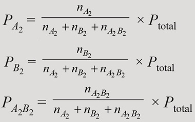 Jumlah tekanan parsial (P) tiap-tiap gas merupakan tekanan total (Ptotal) suatu campuran gas. Jika suatu reaksi kimia berikut:
