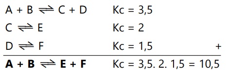 - Jika reaksi-reaksi yang berkaitan dijumlah, maka harga Kc total adalah hasil kali Kc dari reaksi-reaksi yang dijumlah.