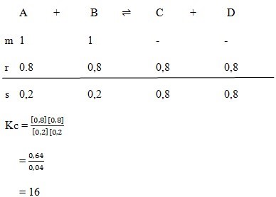 - Bila harga Kc > 1, berarti hasil reaksi pada kesetimbangan lebih banyak daripada pereaksi.