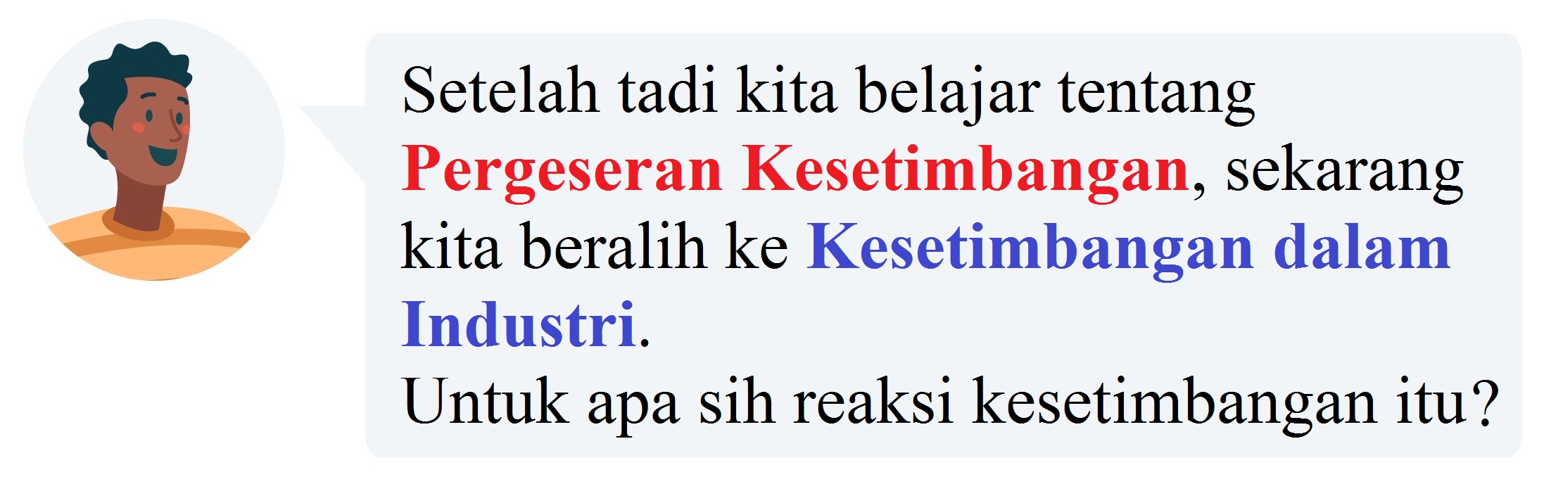 Dalam industri, reaksi kesetimbangan dibuat sedemikian rupa sehingga menggeser kesetimbangan ke arah produk, dengan cara sesederhana mungkin dan seefisien mungkin.