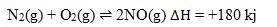 Reaksi diatas termasuk reaksi endoterm jadi jika dinaikkan suhu maka kesetimbangan akan bergeser ke arah reaksi endoterm atau bergeser ke arah kanan (NO), jika reaksi bergeser ke arah kanan maka nilai Kc akan semakin besar.