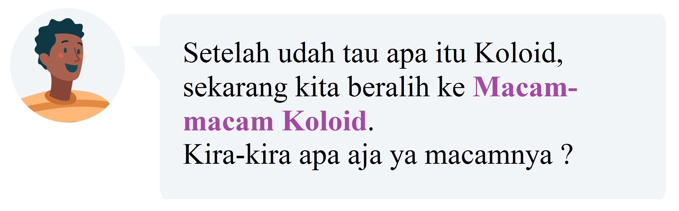 Berdasarkan fase terdispersinya, koloid terdiri dari:
